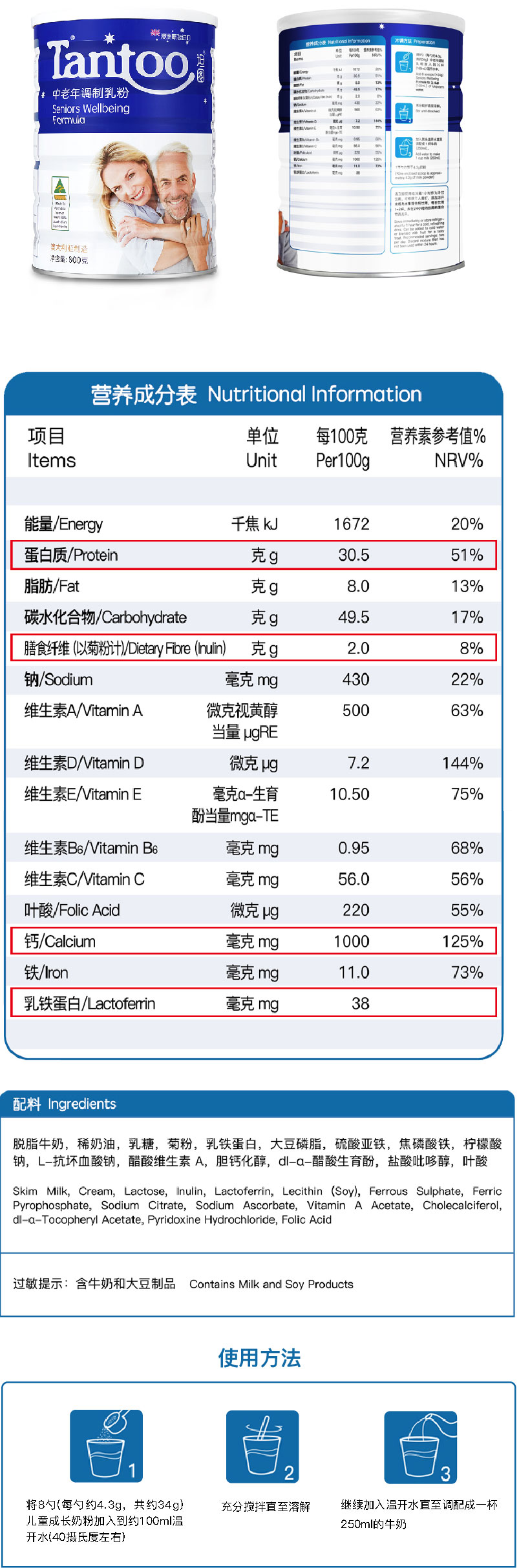 利用澳洲优质奶源,添加多种营养元素,